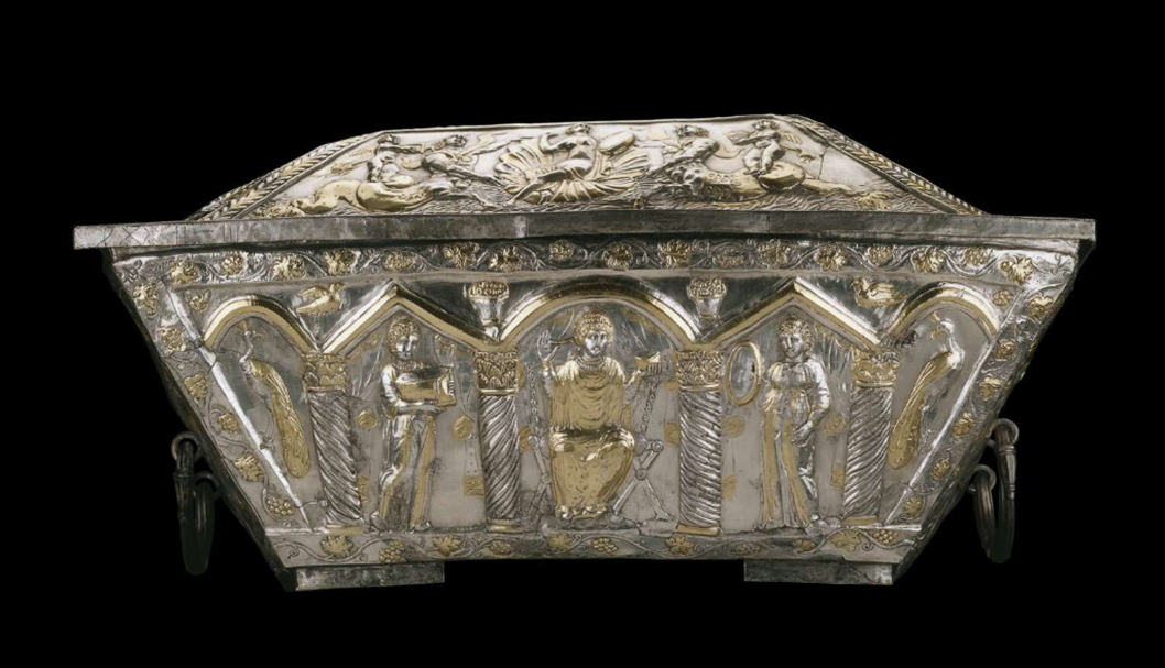 Easily tie the image of the couple to the inscription, what is interesting with the casket iis it gives us an opportunity to view it singularly from a female perspective- we can see from the iconography that theyre all related to beauty and bathing