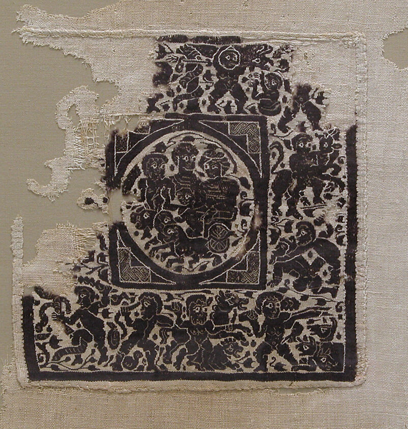 Egyptian cloth fragment showing Dionysus and Ariadne and the Labours of Herakles, 4th-6th centuries CE.