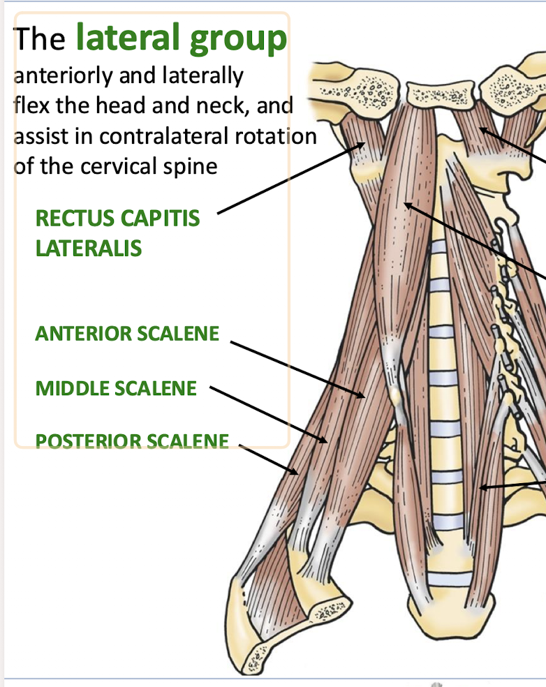 RECTUS CAPITIS LATERALIS, ANTERIOR SCALENE, MIDDLE SCALENE, POSTERIOR SCALENE