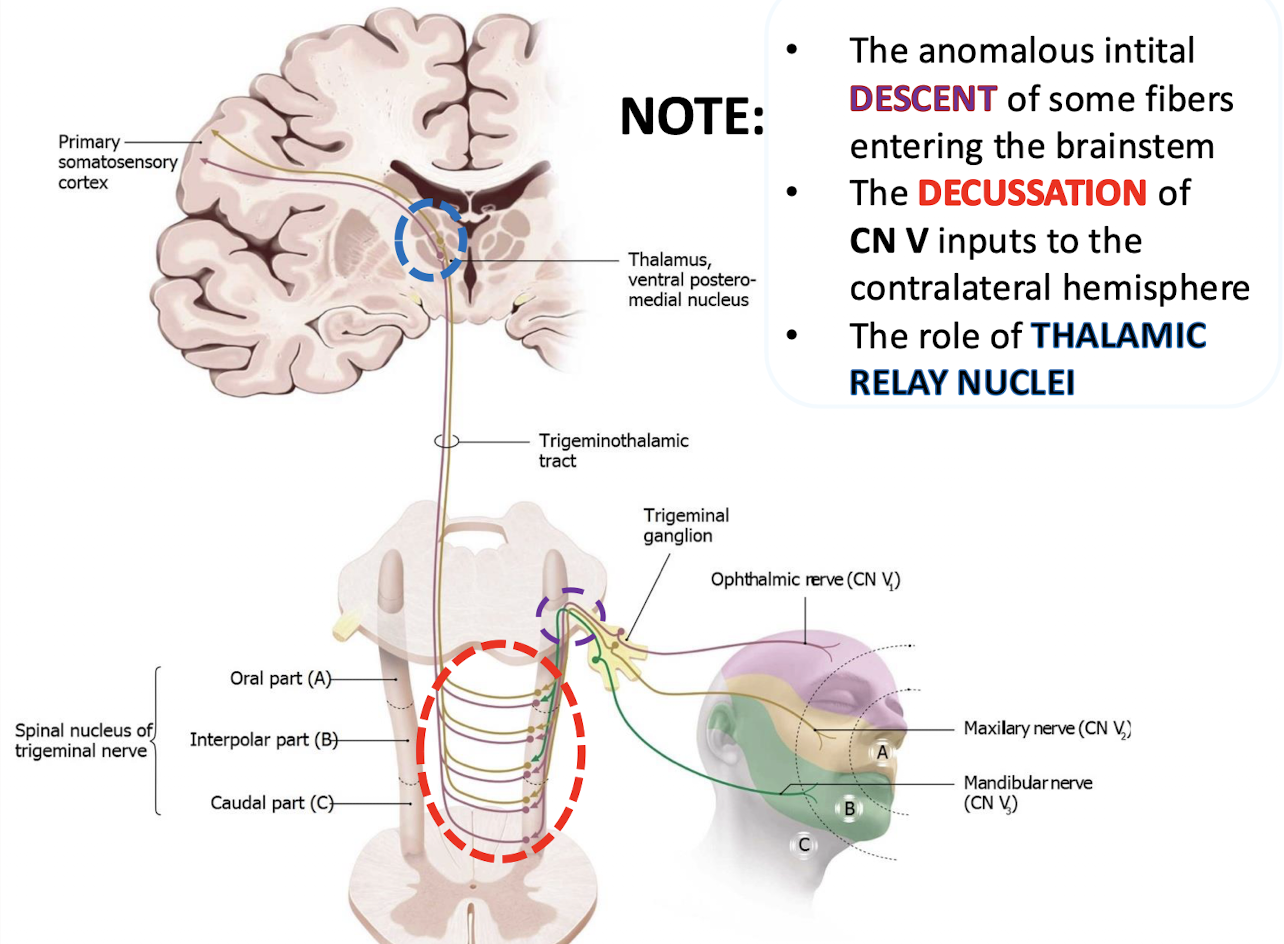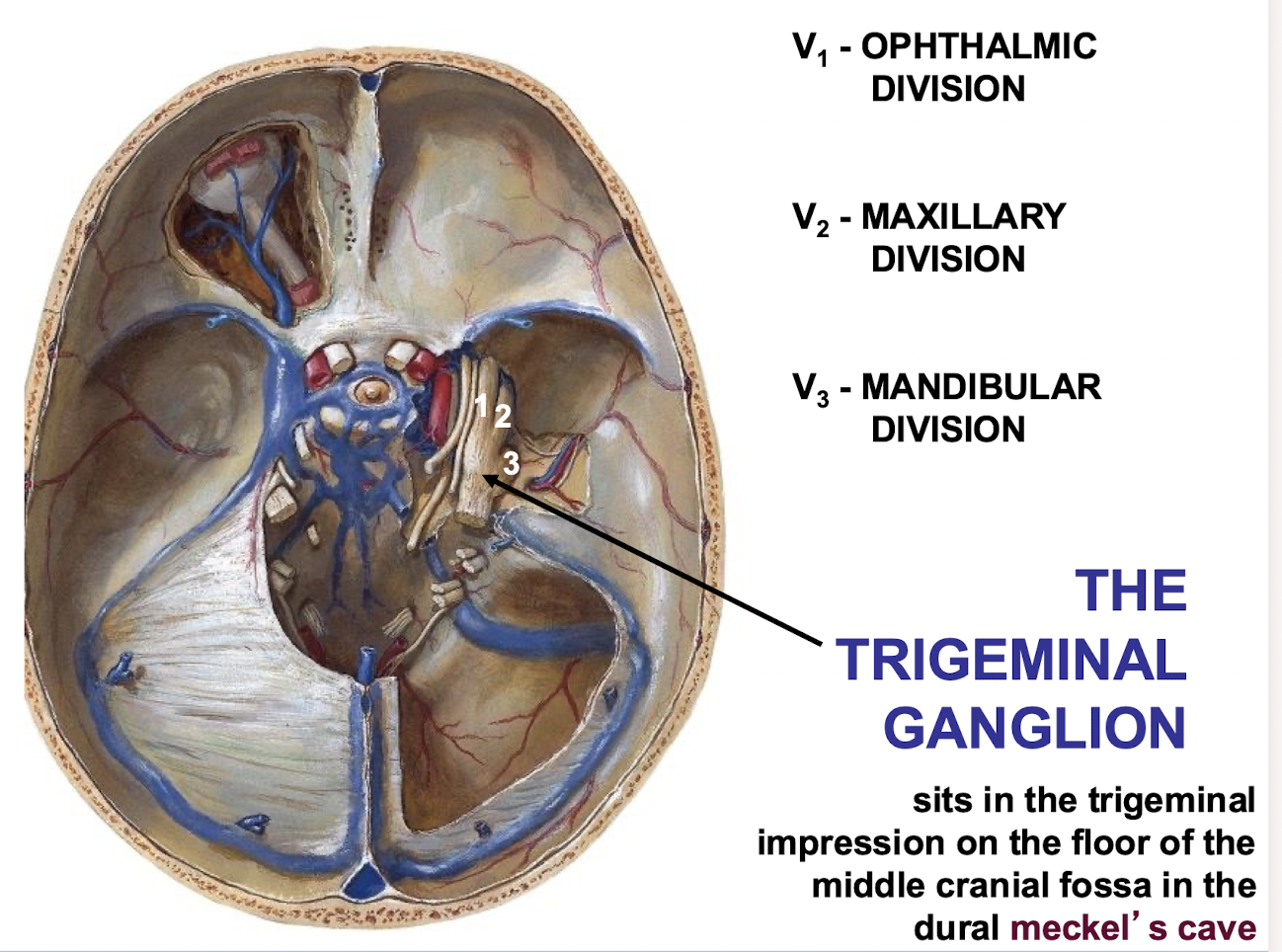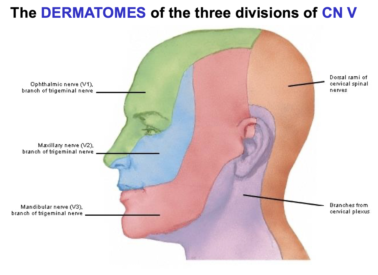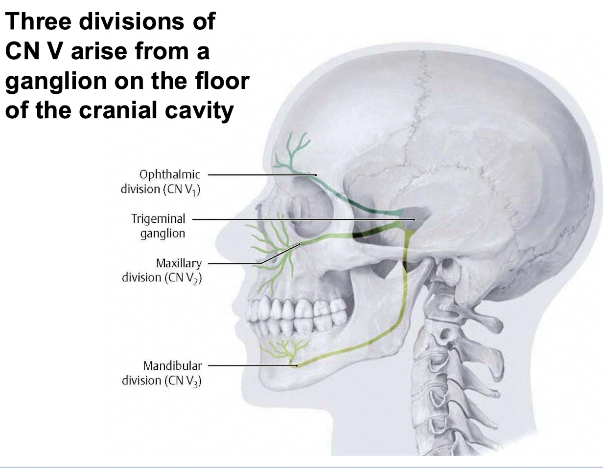V1 - OPHTHALMIC DIVISION; V2 - MAXILLARY DIVISION; V3 - MANDIBULAR DIVISION