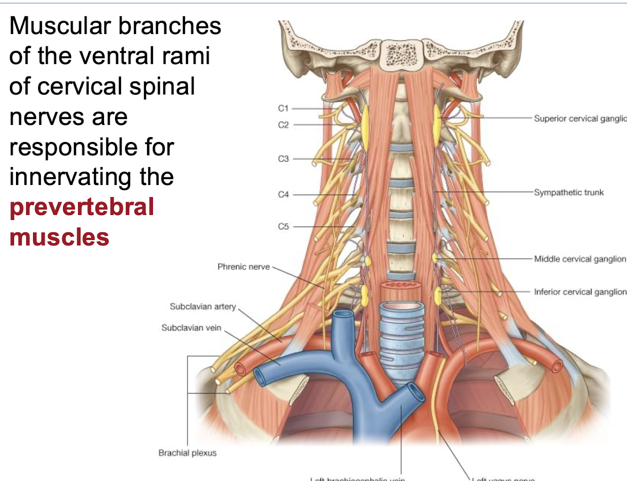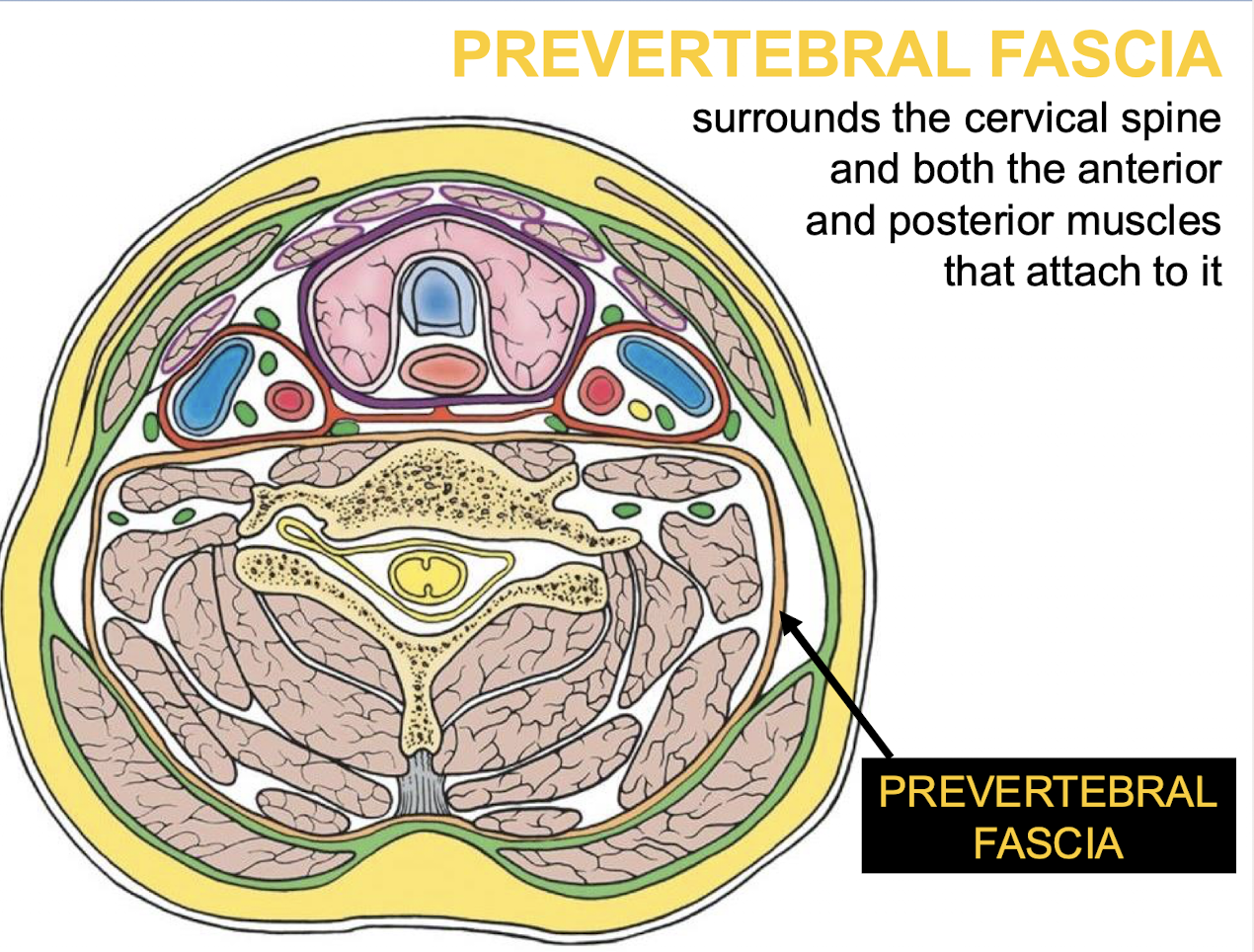 PREVERTEBRAL MUSCLES; they attach primarily to anterior aspects of cervical vertebrae; including vertebral bodies and transverse processes