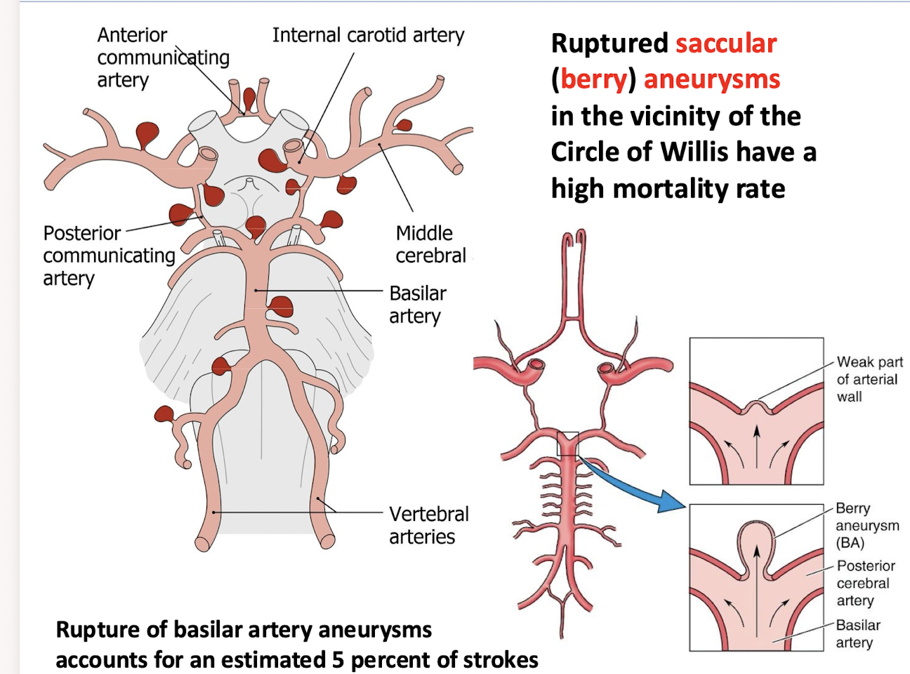 Rupture of basilar artery anuerysms accounts for an estimated 5 percent of strokes