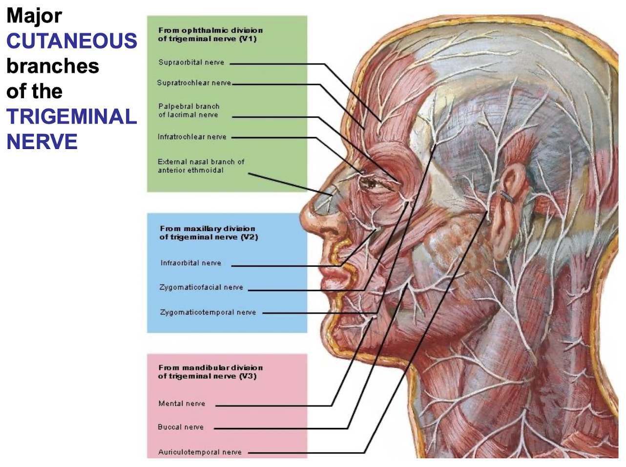 SUPRAORBITAL (V1); INFRAORBITAL (V2); MENTAL (V3)
