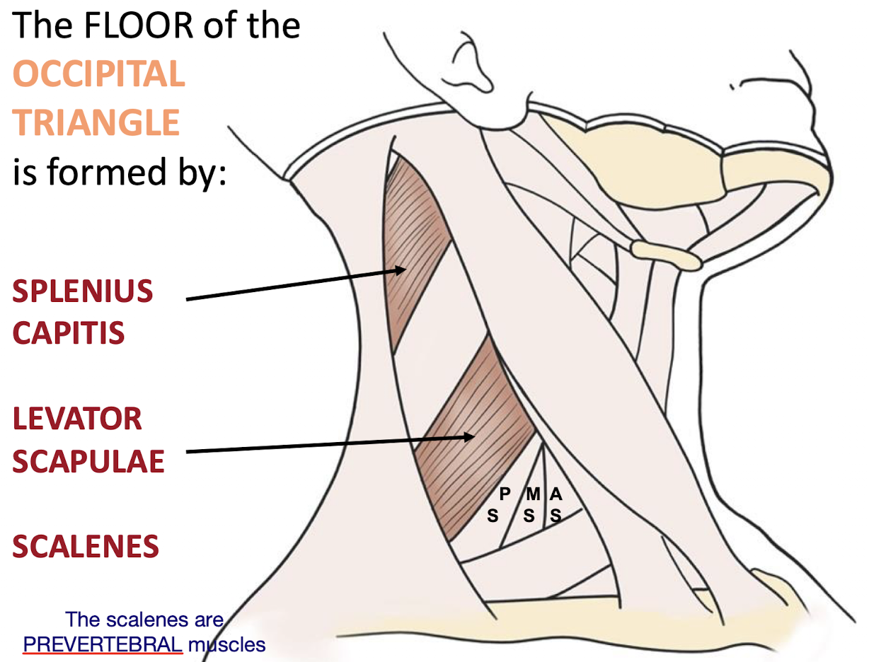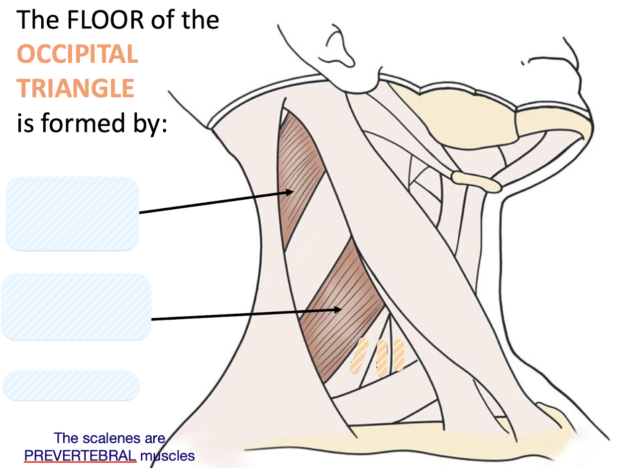 What muscles form the FLOOR of the OCCIPITAL TRIANGLE?