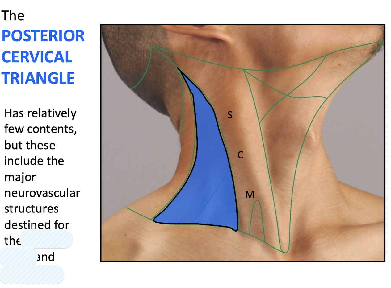 Posterior border of SCM; Anterior border of TRAPEZIUS; and CLAVICLE