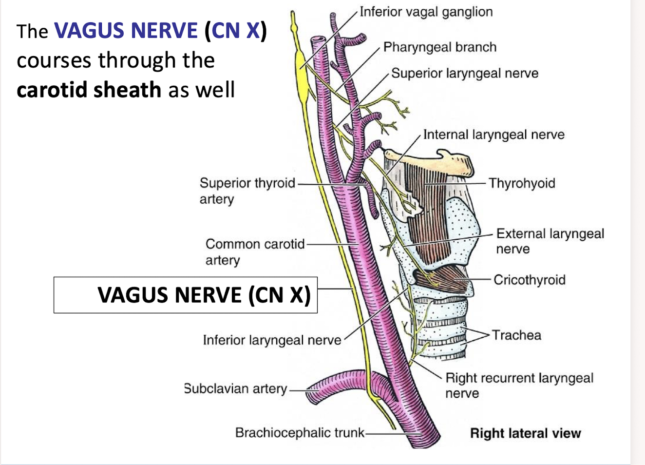 What cranial nerve courses through the carotid sheath along with the major vessels?