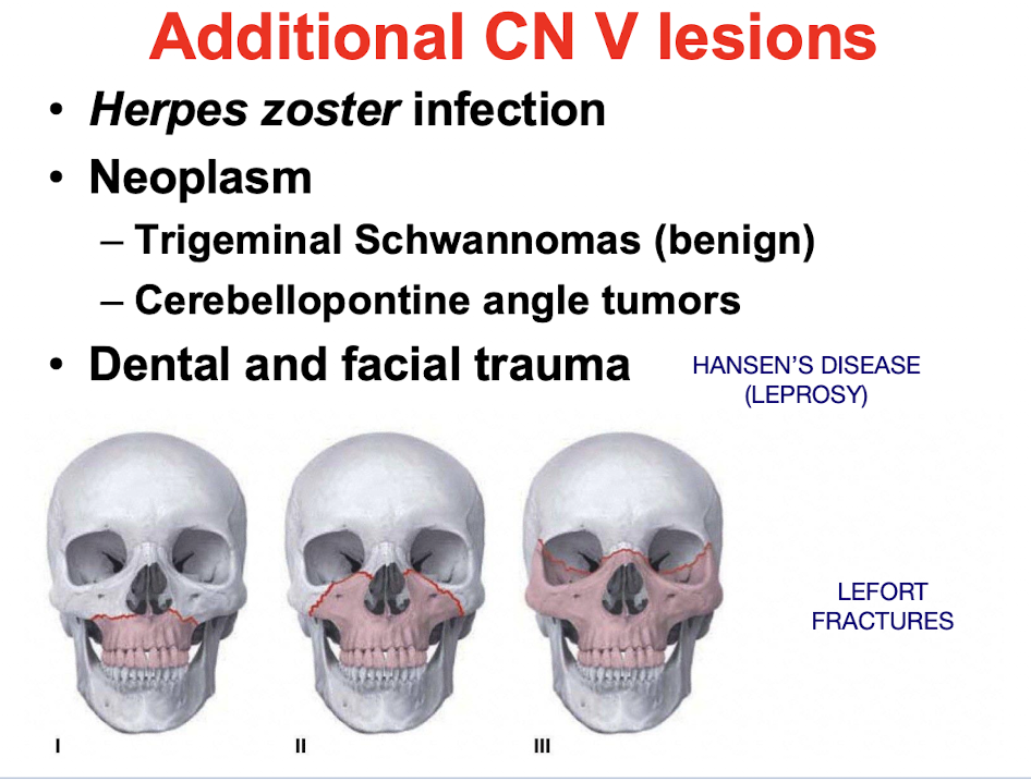 What are some other CN V lesions (not trigeminal neuralgia/ tic doloureux)