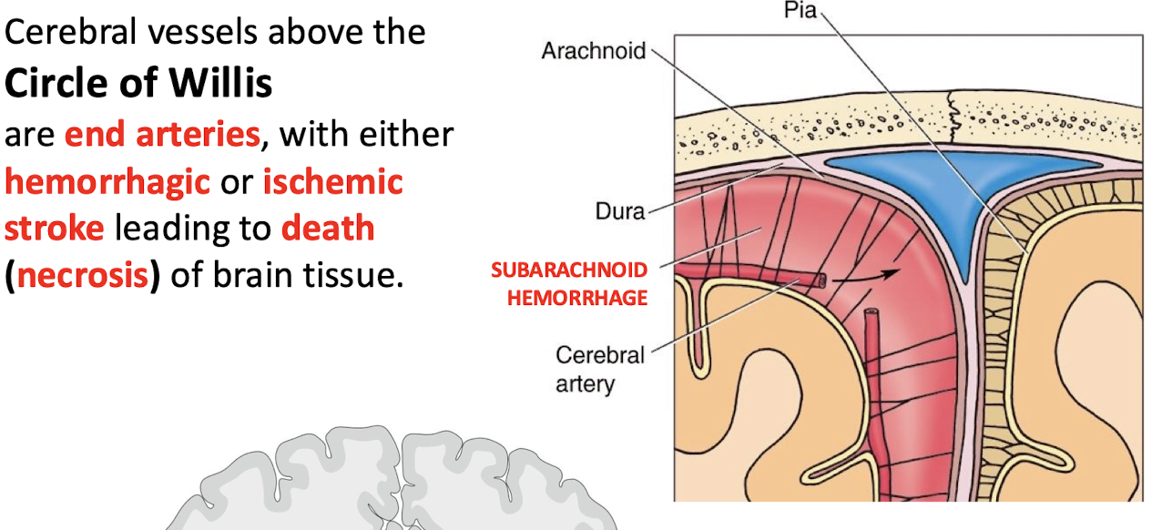 Cerebral vessels above the Circle of Willis are end arteries. The Circle of Willis is the ring at the base, and the ACA, MCA, and PCA are the main arteries that branch upward above it to feed the brain.