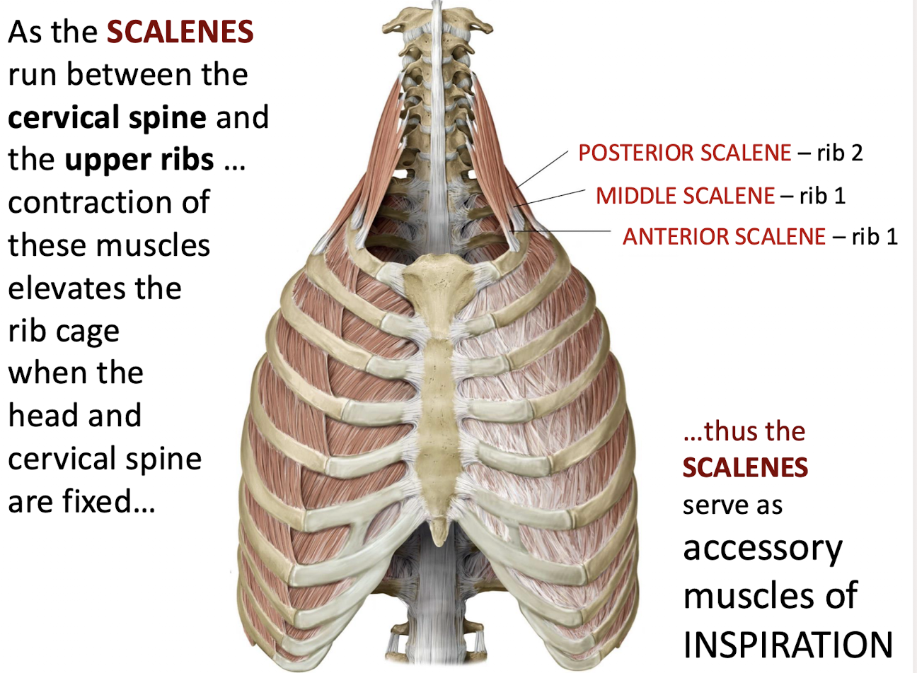 When the head and cervical spine are fixed; what accessory function do the SCALENES serve?