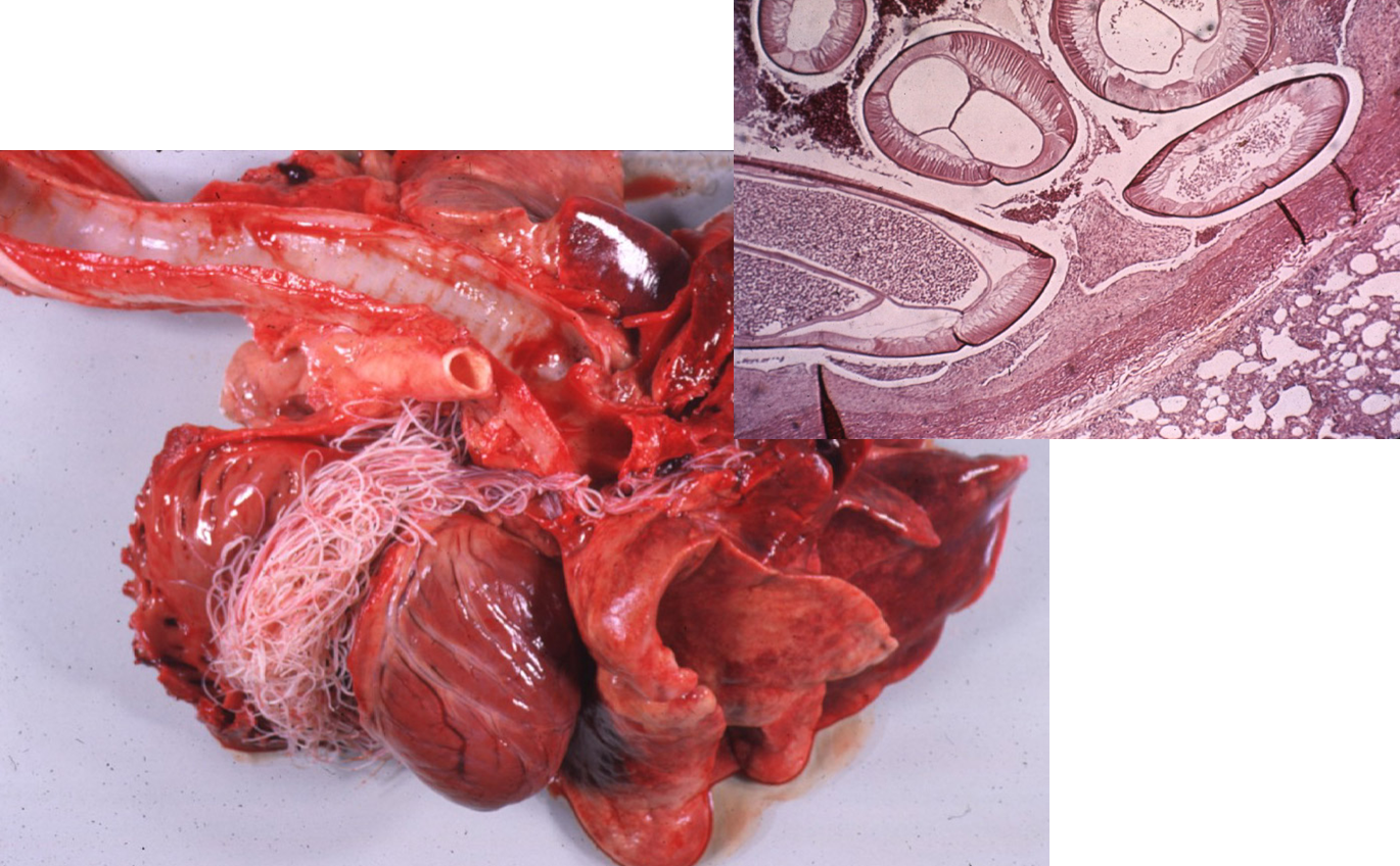 Dirofilariosis much bigger than strongylosiss —> vascular oclusion