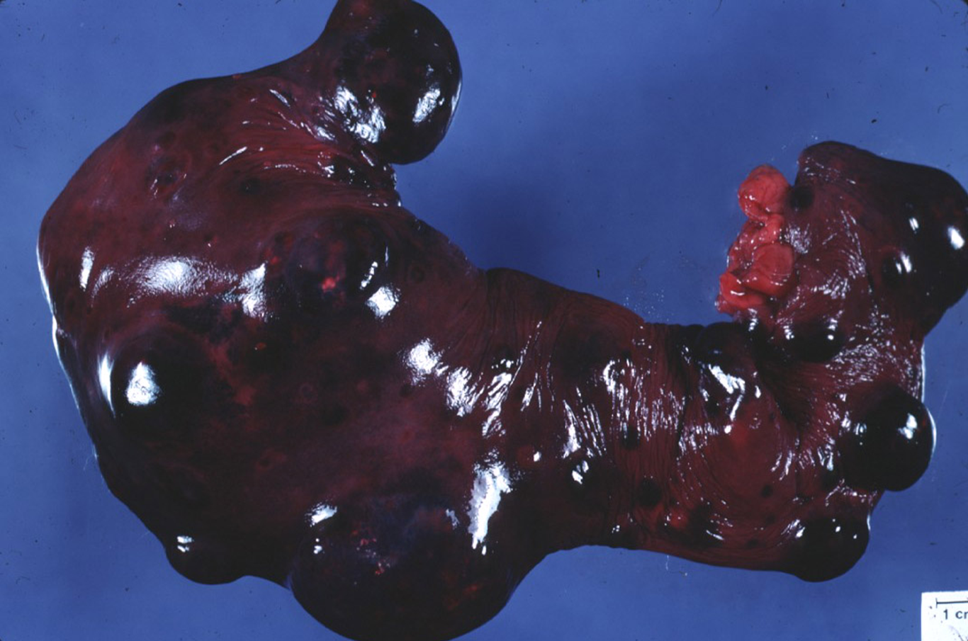 Large red (haemorrhagic) nodular masses