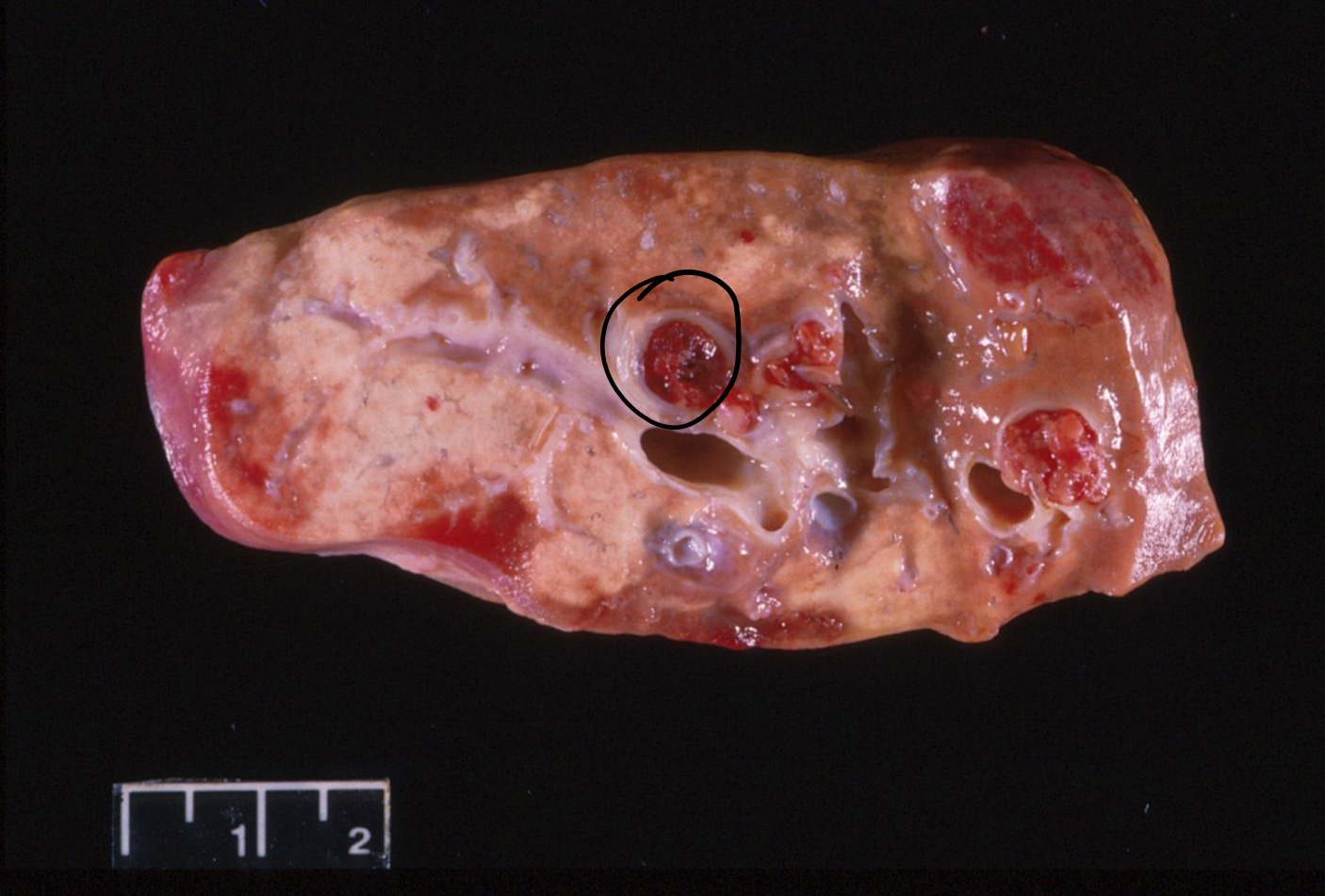 Artery occluded by thrombus in lung