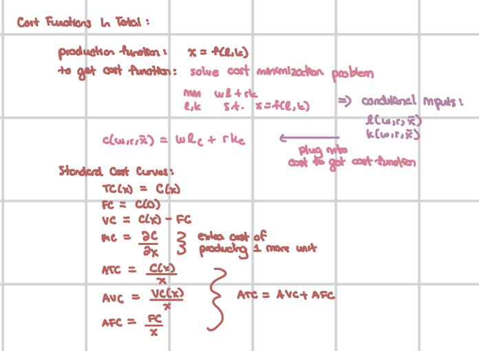 Shephard’s Lemma (take derivative of cost function in terms of w, get labor demand; take derivative of cost function in terms of cost of capital (r), get capital demand.