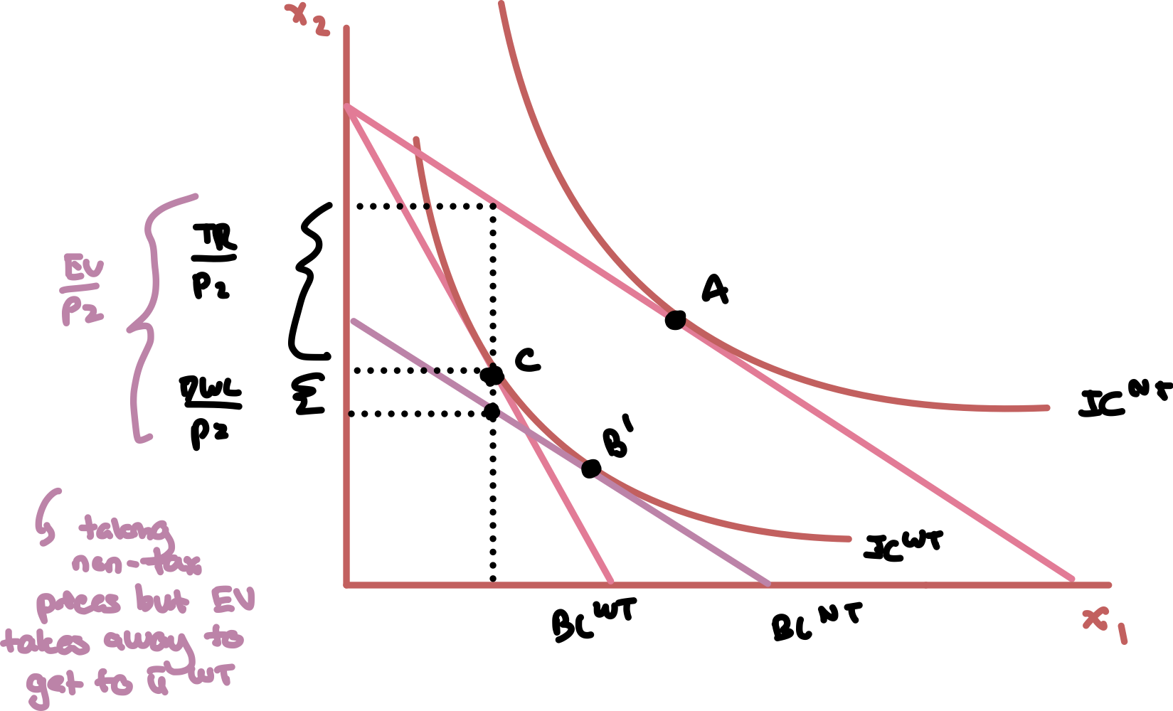 A → B’: The most Andrew would pay to avoid experiencing the tax / experience the coupon (EV).