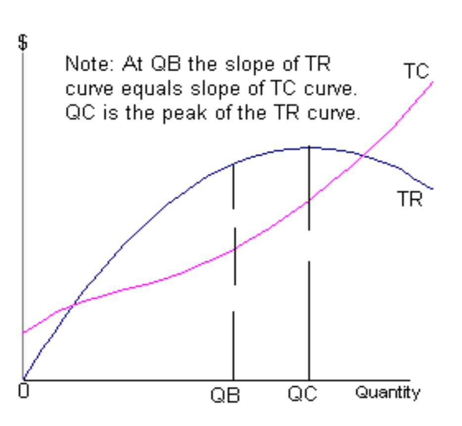 profit max is at QB where diff between TR and TC is greatest