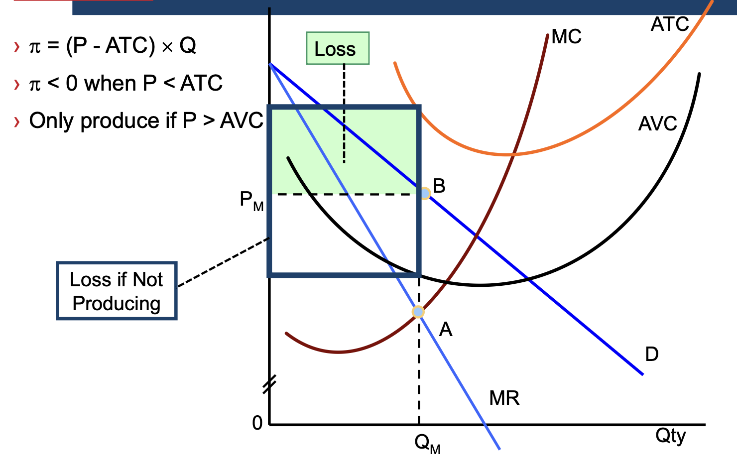 if MR<MC — profit fall from selling last unit so better off not selling