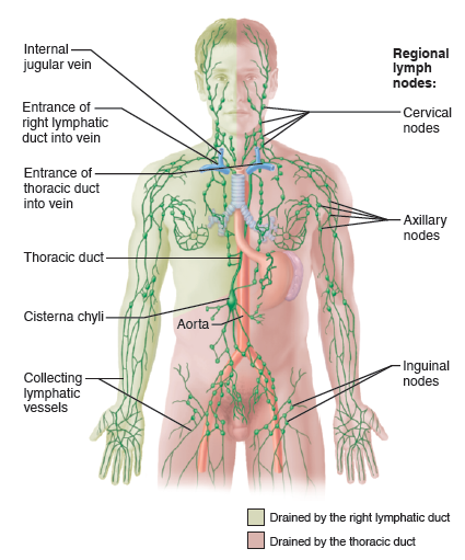 Lymph, lymphatic vessels, lymphoid organs and lymphoid tissue (throughout the body)