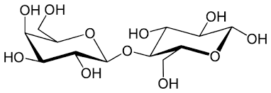Disaccharide of galactose + glucose via β(1→4) linkage.