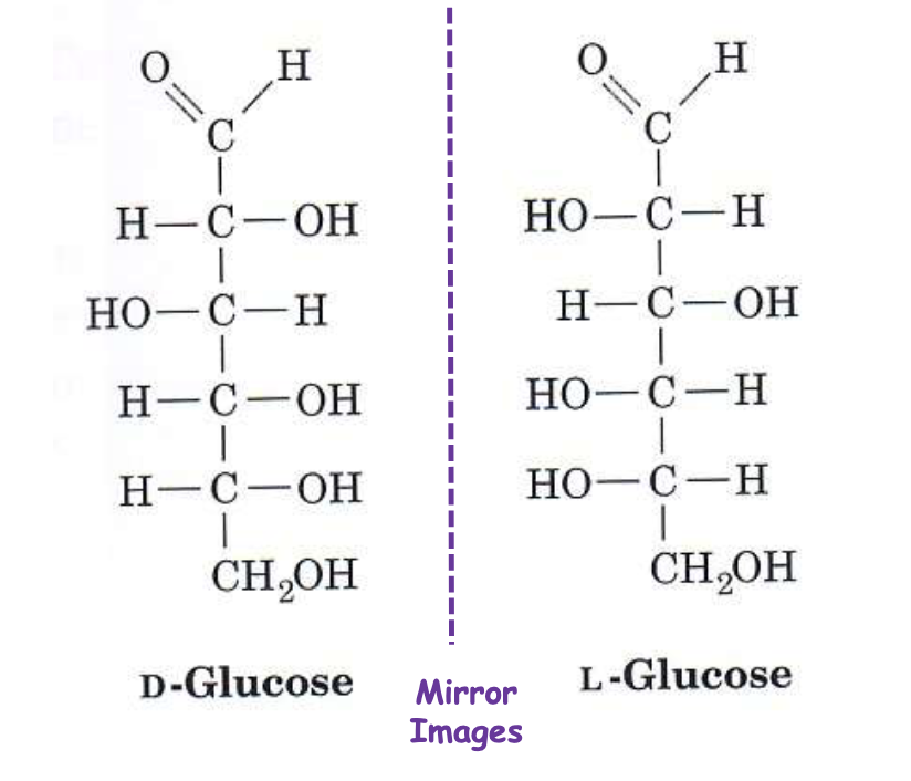 Mirror-image stereoisomers (D-glucose vs L-glucose).
