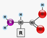 Central carbon, hydrogen atom, amine group, carboxyl group, variable side chain