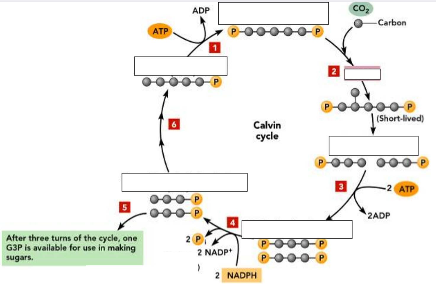 But only _ G3P out the _ G3P can be counted as a gain and can exit the cycle to be used for the synthesis of sugars as the _ G3P are rearranged into _ Ru5P