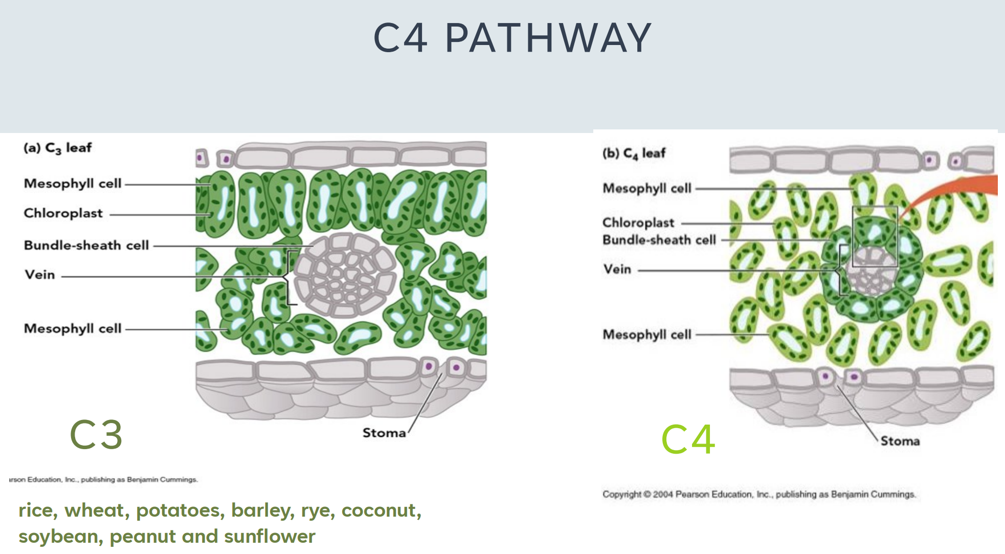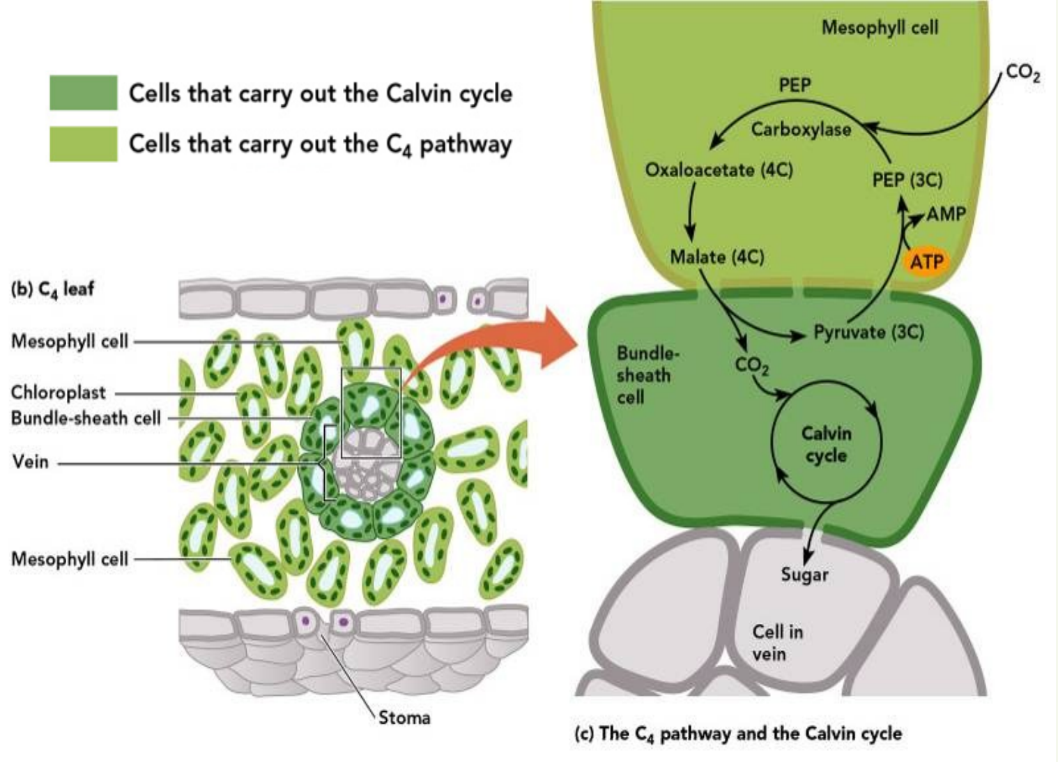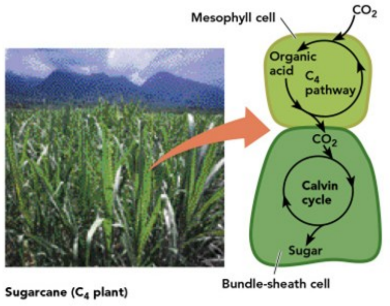 A high CO2 concentration is maintained for the Calvin cycle, which minimizes photorespiration.