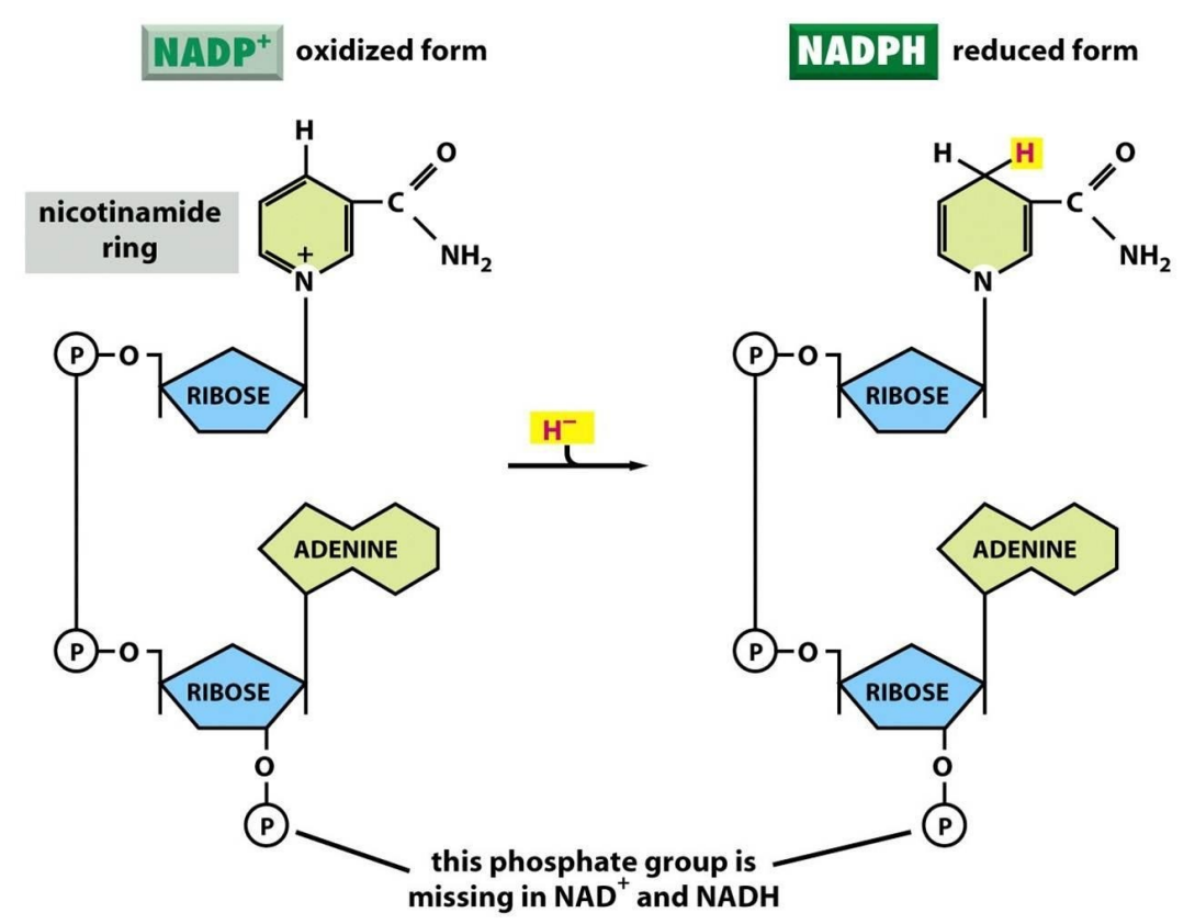 using the energy to make ____ and to reduce the compound _________, an electron carrier, to ________
