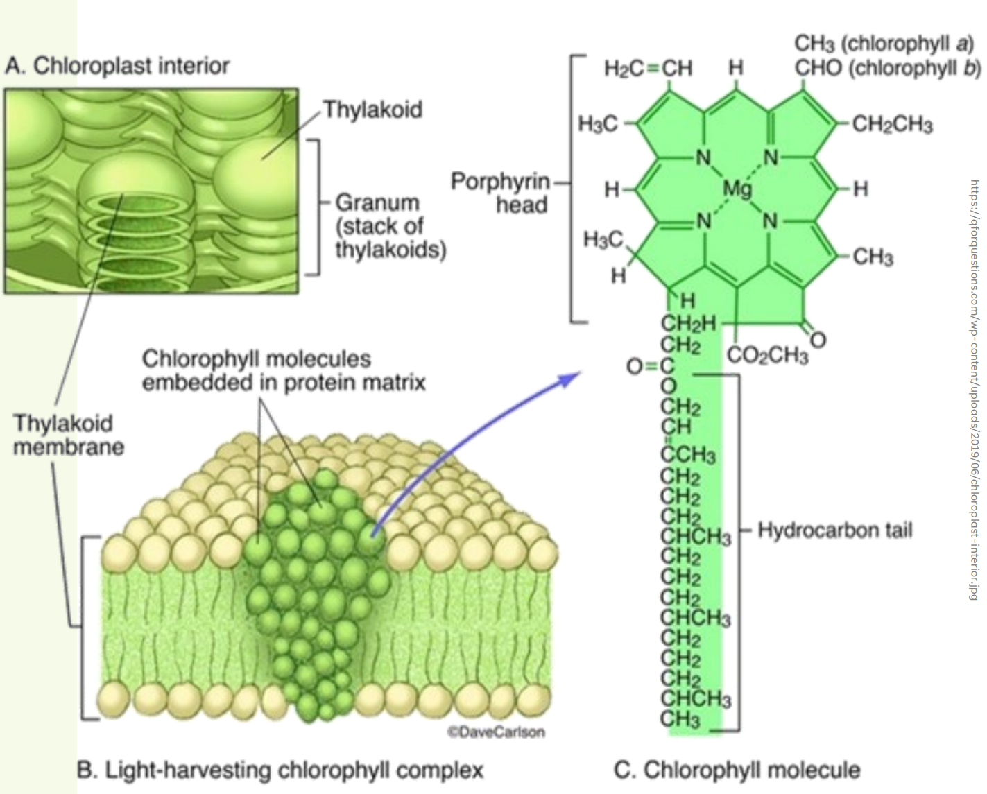 __________ tail interacts with hydrophobic regions of proteins inside __________- of chloroplast
