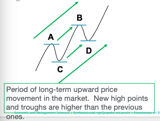 long-term trend interrupted by periods where price moves in the opposite direction. In a bull market, it is during a reasonable period of price declining, 3 weeks-months and must drop at least a third of the movement