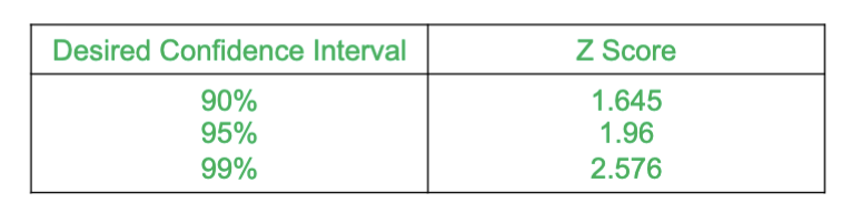 What are some commonly used z scores for confidence intervals?