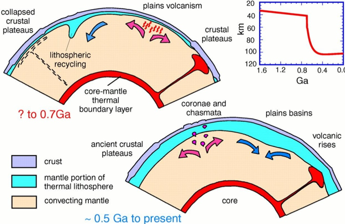 plume heads: form over upwellings in mantle of venus - uplifted, circular, extensional faulting