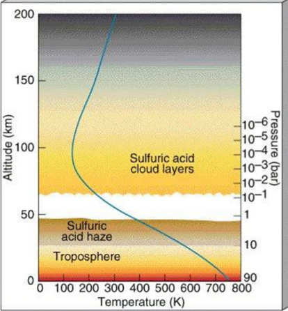 would expect it to radiate heat from sun away with heavy atmosphere (maybe 50-60C)