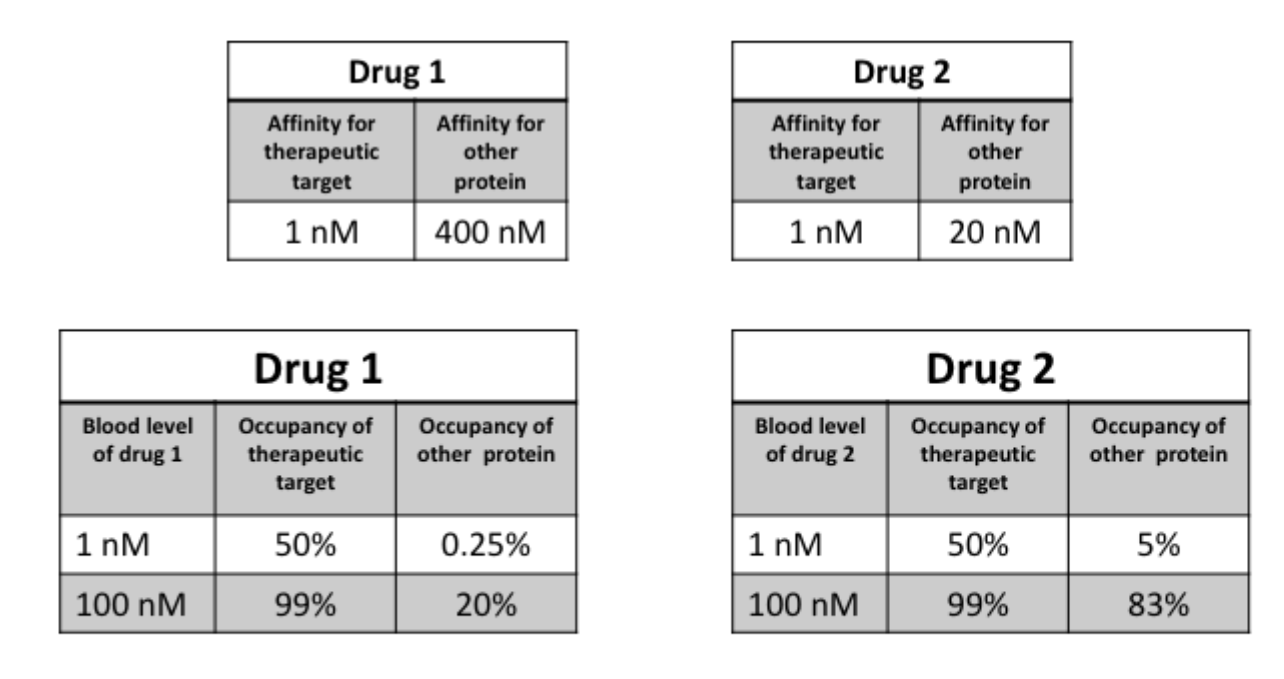 drug has relative affinity for its target vs some other protein
