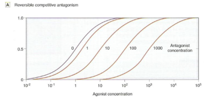 dose response curve is shifted RIGHT