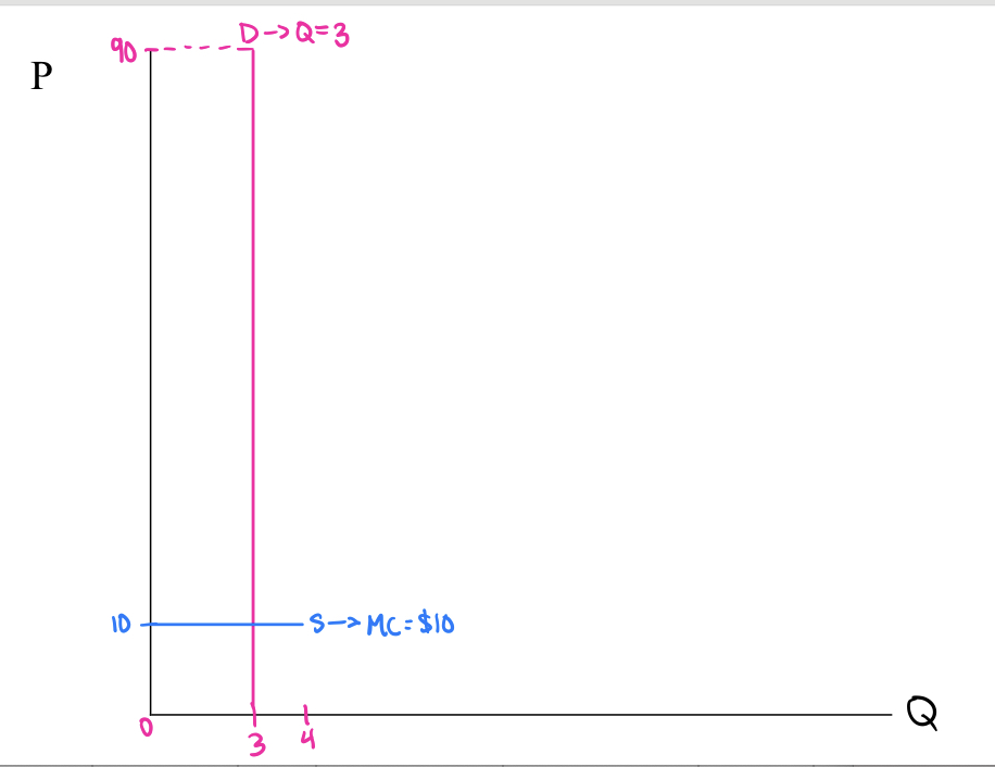 Capacity Constrained Price Competition: Illustrate supply and demand for this market in the coordinate axes below.