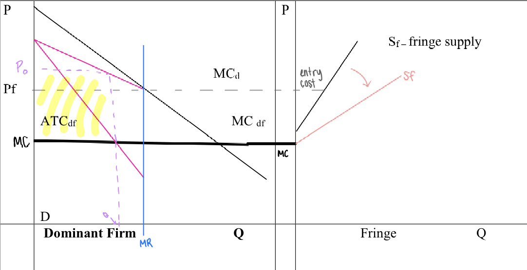 i) The effects of competitive fringe on demand curve for the dominant firm