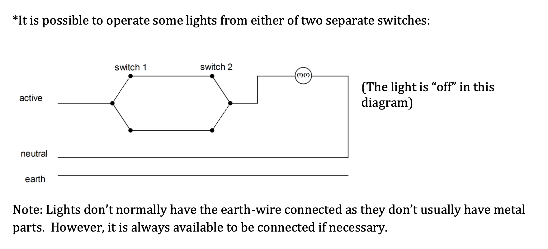 for ‘power’ and lights. ‘Power’ outlets and light fittings are connected in parallel so that each