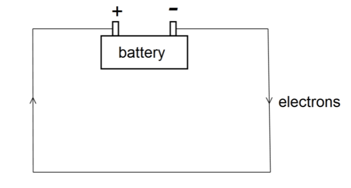 If the positive terminal of a battery (a device that separates charge chemically) is connected to the negative terminal by a wire conductor, electrons will flow from -ve to +ve terminal
