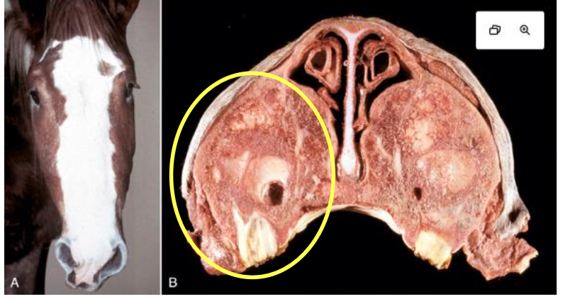What was affecting this horse? note the swelling of the facial crest and the fibroosseous tissue in the maxillae.