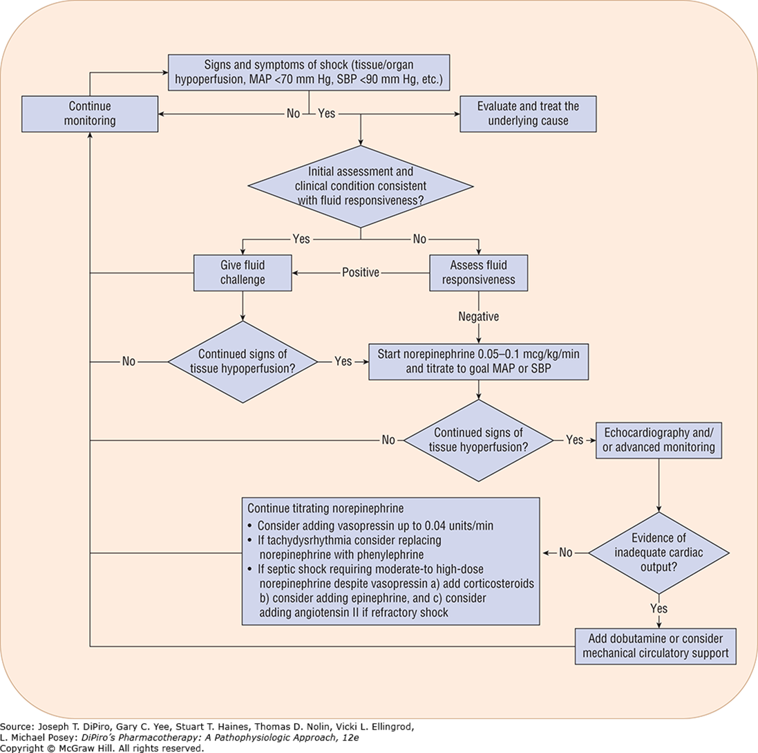 Norepinephrine as pharmacotherapy for shock