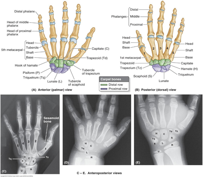 Pisiform, hook of hamate, 5th metacarpal