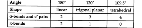 bond angles for tetrahedral, trigonal planar and linear