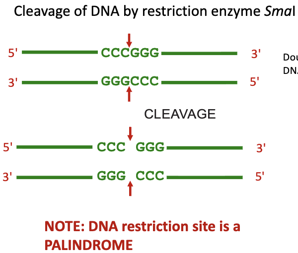 recognizes specific DNA sequences, and then cleave the DNA sequences somewhere else
