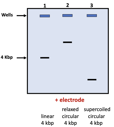 topology of DNA strand affects its rate of migration in gels