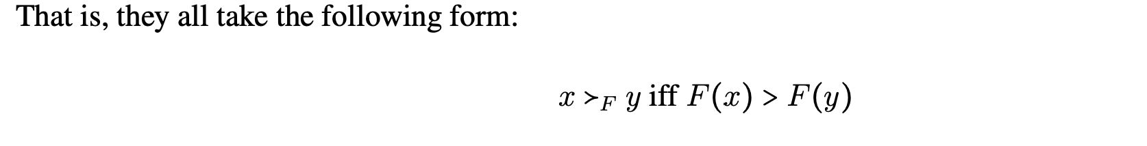 write x ⪰F y = outcome x is at least as good as outcome y