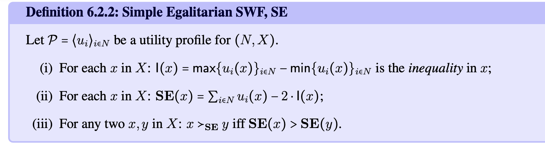 between the best-off and the worst-off person in x, and is weighed by factor 2 (weighted simple egalitarian can change the weight w from 2 to something else)