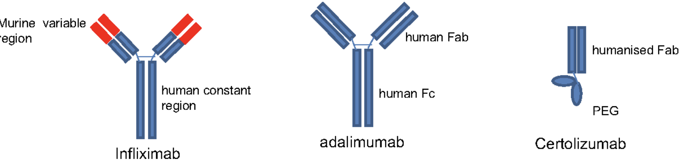 Cimzia | PEGylated Fab | No Fc region → lower clearance |