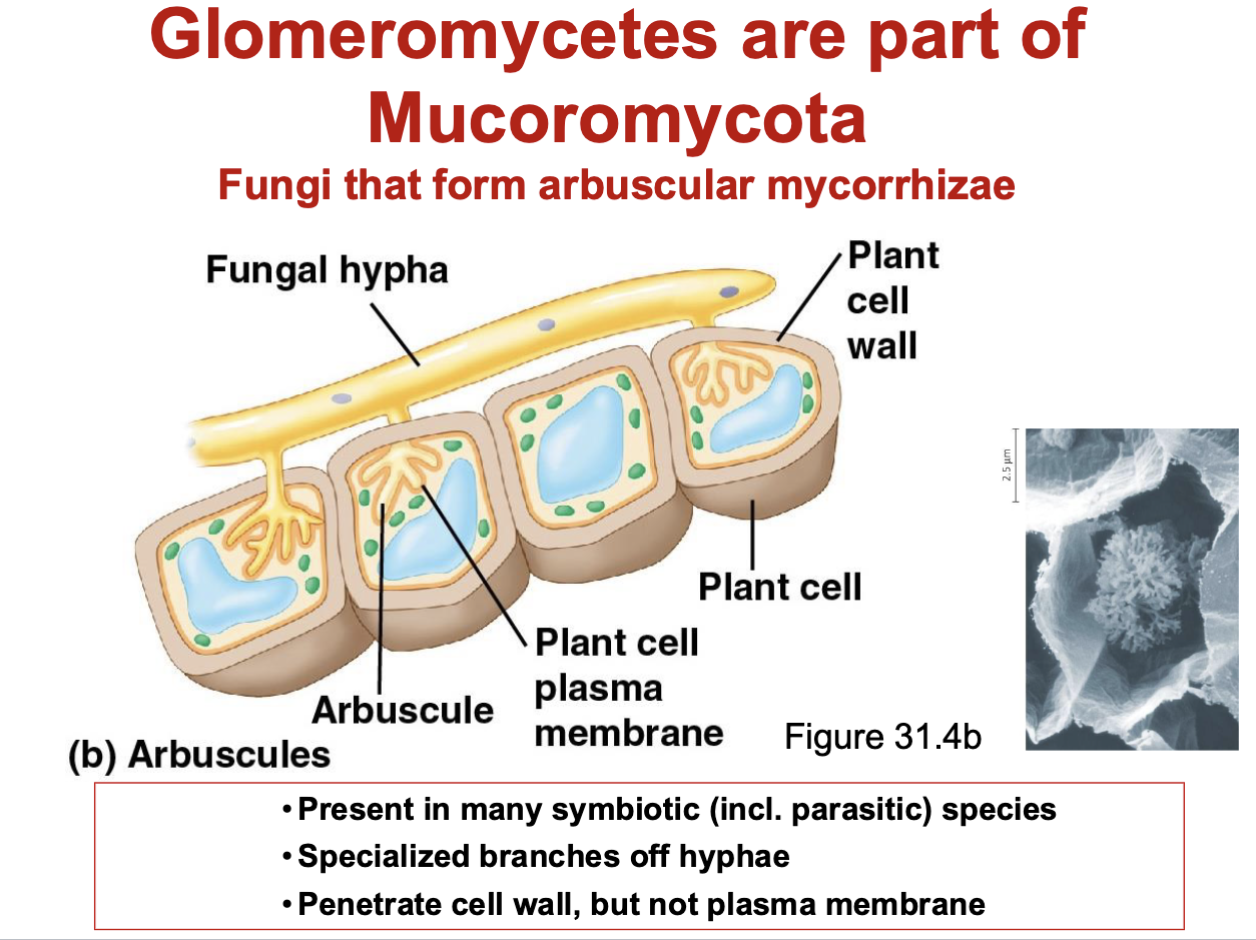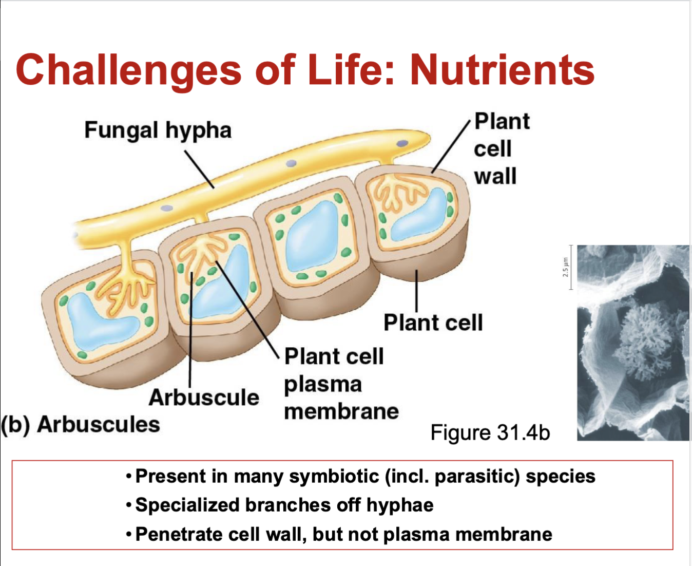 The “arbuscule” will kind of attach itself to the plasma membrane but it will not break through, and then it absorbs nutrients.