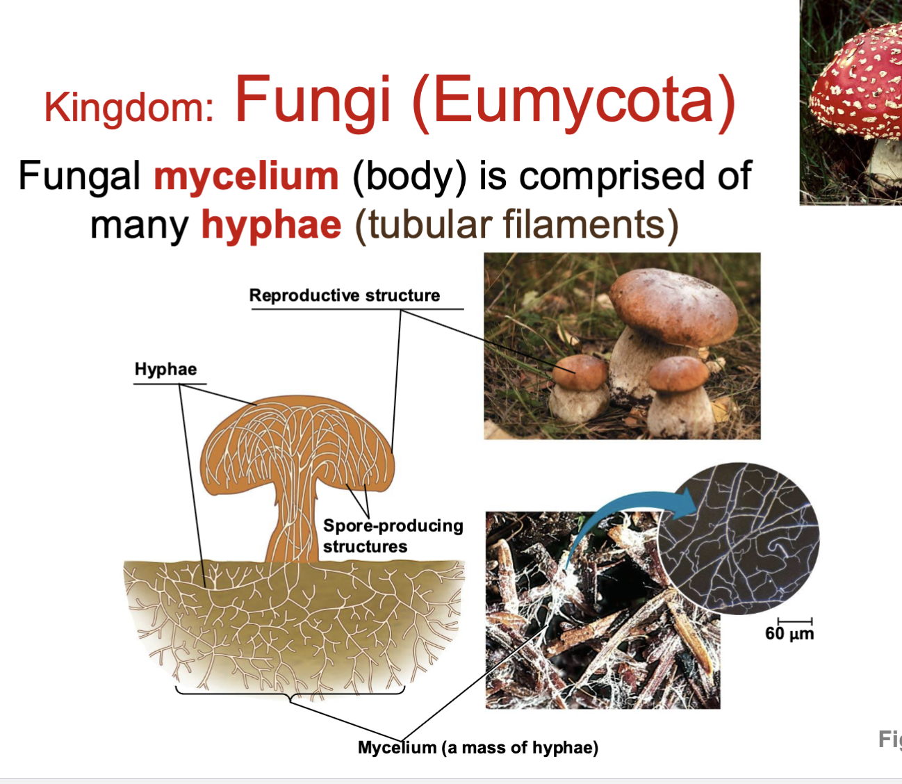 Are fungi eukaryotic or prokaryotic? Are they multicellular or single celled? What is the cell wall of fungi made up of? Are fungi heterotropic or autoptropic?
