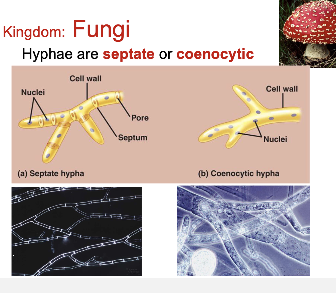 Are Fungi eukaryotic? Are Fungi multicellular? What is fungi wall made up of? Are they autotropic or heterotropic? Do they spend most of their life in haploid or diploid?